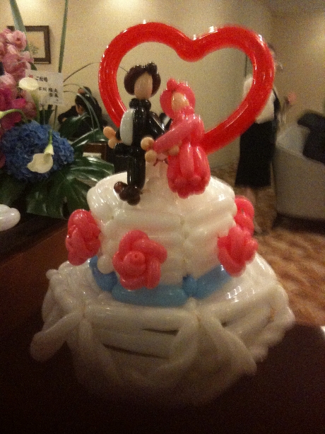 写真は先輩の芸人さんが作ったバルーンのウェディングケーキ↓