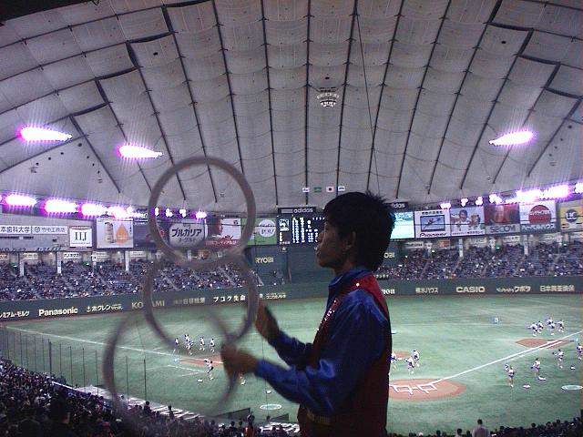 撮影はオオツカタカシ君。彼と一緒に選手達のサインボールをジャグリングしながらばら撒くのが今回の任務(^^;)